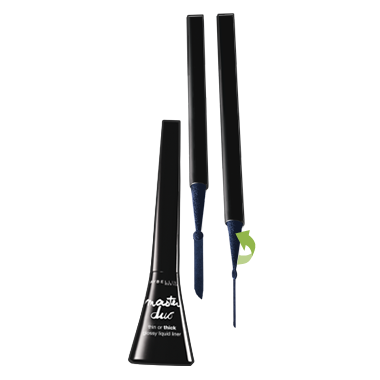 Maybelline Eye Studio Master Duo 2-in-1 Glossy Liquid Liner has a dual tip to create thin precise lines with one side and bold thick lines with the other. The glossy formula is ideal for bold lines.
