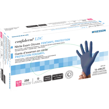McKesson Confiderm LDC low dermatitis nitrile exam gloves with fentanyl protection offer all the benefits of a nitrile glove without the sulfur-based chemical accelerators. This feature promotes allergy care and provides better protection to glove users with Type I hypersensitivity (natural rubber latex protein) and reduces the potential of Type IV hypersensitivity (chemical). Ideal for people susceptible to hand dermatitis or sensitive to chemical accelerators commonly used in the manufacture of nitrile gloves.