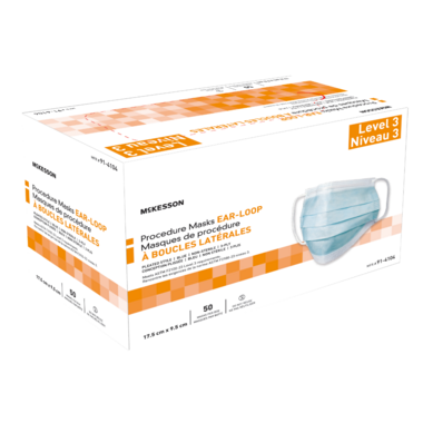 McKesson Procedure Face Masks are constructed with a three-layer, non-woven fabric featuring a spunbond polypropylene on the inner and outer layers and a meltblown polypropylene middle layer. These Level 3 face masks feature elastic ear loops that stretch for convenient donning, quick removal, and a comfortable fit.