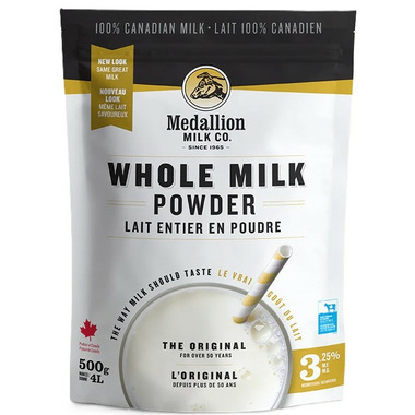 Whole milk has all the flavor and nutrition of farm fresh milk and 3.25% butterfat when reconstituted. Packed in special bags to preserve freshness, its perfect for baking, bread making and drinking. ItҒs ideal for toddlers who no longer require baby formula but not ready for adult beverages. Use for enriching the diet of those with depleted appetites.