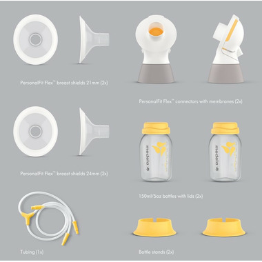 The PersonalFit Flex breast pump kit has everything you need to go with your Medela Freestyle, Swing Maxi, or Duo electric breast pump. This convenient kit features Medelas classic pumping accessories, including breast shields, connectors, and bottles with stands and lids, plus extra tubing.