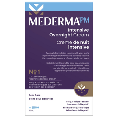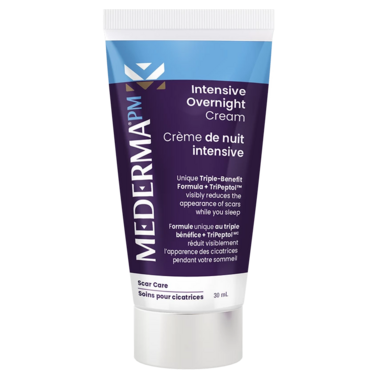 When we sleep, our bodies work harder to reverse the damage caused during the day, repairing and regenerating skin cells faster. Mederma® PM Intensive Overnight Cream is specially formulated to help this activity with TriPeptol®, a skin nourishing complex with peptides, collagen, and antioxidants to promote healthy looking skin.
