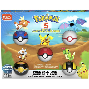 Build the battle with 5 Pokemon in 5 different Poke Balls! Build, train and battle with 5 iconic Pokemon figures in this exclusive Poke Ball Pack. In every battle, a Pokemon trainer must choose wisely. Now, discover 5 Pokemon to build and battle with this multi-figure pack! This pack features some of the most popular Pokemon, including Cubone, Zubat, Caterpie, Magikarp and, of course, Pikachu! And each figure comes with a different type of Poke Ball with a pronged top and interior so you can display your Pokemon! Ideal for ages 6 and up.