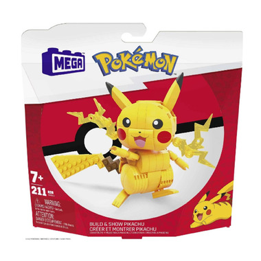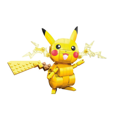 Build even bigger battles with this Pikachu construction set. This Electric-type Pokmon stands over 4 inches tall and can create a number of heroic stances when you pose it in different battle-ready positions. This faithfully modeled Pikachu includes Electric-type attack details on its cheeks for a shockingly authentic building experience.