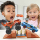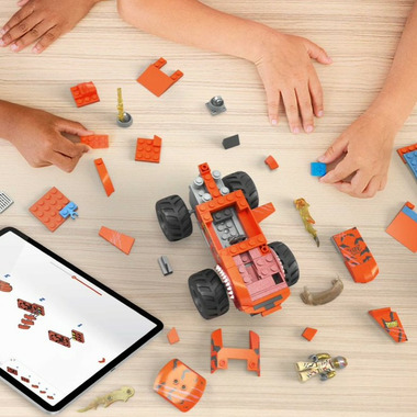 Get ready for Smash & Crash action. Equipped with a tiger-striped paint job and shark fin body, this buildable Monster Truck vehicle features authentic details and comes with ramps and ring of fire to navigate. Build, race, crash and smash when you sit the included micro action figure in the driver's seat, pull and release, and watch the hood pops off on impact.