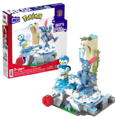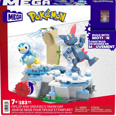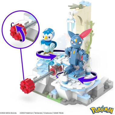 Watch Piplup and Sneasel have a winter-ful time with this building set featuring the innovative Motion Brick! Build the snowy environment, then turn the crank to see Piplup and Sneasel skate around this winter wonderland. Combine with other Adventure Builder sets to create an expanded Pokemon world with motion.