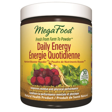 MegaFood Daily Energy Nutrient Booster is made with a blend of beets, green tea, ginseng root and B12.
