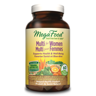 MegaFood Multi for Women is nourishment in a convenient two tablet daily formula, with carrots, brown rice, broccoli, cabbage and oranges.