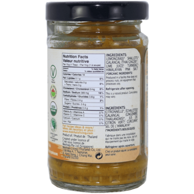*Lemongrass, *Shallots, *Lemongrass, *Galangal (Thai Ginger), *Lime Juice, *Turmeric, Himalayan Pink Salt. *Organic Ingredients. Produced in a facility that processes sesame, soy and tree nuts.