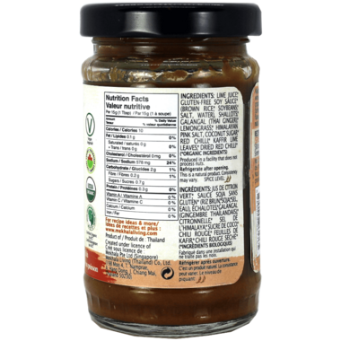 *Lime Juice, *Galangal (Thai Ginger), *Gluten-Free Soy Sauce, *Shallots, *Lemongrass, Himalayan Pink Salt, *Red Chilli, *Coconut Sugar, *Kaffir Lime Leaves, *Dried Red Chilli. *Organic Ingredients. Produced in a facility that processes sesame, soy and tree nuts.