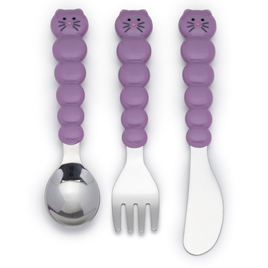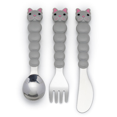 - Colourful bulldog, cat, shark and bear spoon and fork sets make feeding fun!
