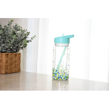 These Double-Wall Water Bottle is designed with both fun and functionality in mind to help your little one stay hydrated. Adding a playful twist, the bottle includes balls or sparkles that move with a simple shake or flip of the bottle, turning every sip into a fun, interactive experience. This double-walled bottle is designed with a convenient flip-top straw, making it easy for your little ones to drink independently while keeping the straw clean and hygienic when not in use.