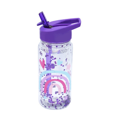 This Double-Wall Water Bottle is designed with both fun and functionality in mind to help your little one stay hydrated. Adding a playful twist, the bottle includes balls or sparkles that move with a simple shake or flip of the bottle, turning every sip into a fun, interactive experience. This double-walled bottle is designed with a convenient flip-top straw, making it easy for your little ones to drink independently while keeping the straw clean and hygienic when not in use.