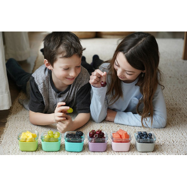 Their glass food storage containers are made from borosilicate glass which is more resistant to thermal shock than the more common soda lime glass. They are dishwasher, freezer, microwave and oven safe, up to 400?. For an added layer of protection, we added a colourful silicone sleeve to reduce the likelihood of shattering when dropped. The airtight and leakproof lids have a silicone seal to lock in freshness, avoid freezer burn and prevent the glass containers from spilling and making a mess in your diaper bag or lunch box. The 5.4oz / 160ml jars are the perfect size for babies starting to eat purees, kids who require an endless assortment of snacks and are also great for salad dressing and snacks for adults. They're great for meal prep, travel snacks and lunches!