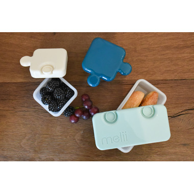 The Melii Luxe Puzzle Bento Box is designed to make feeding fun and engaging. This 3-compartment container snaps together to form a colorful puzzle, perfect for kids and adults. The puzzle latches are easy for kids to open and close, encouraging independent feeding. Ideal for use at home, in lunch boxes, for after-school snacks, or on-the-go travel. The airtight, leakproof seal ensures mess-free transport. Microwave and freezer safe, it fits perfectly in knapsacks and lunchboxes. BPA-free and 100% food safe, this reusable bento box is easy to clean and dishwasher safe. The 3 compartments provide perfect portion sizes for toddlers and children, promoting healthy, balanced snacks and meals.