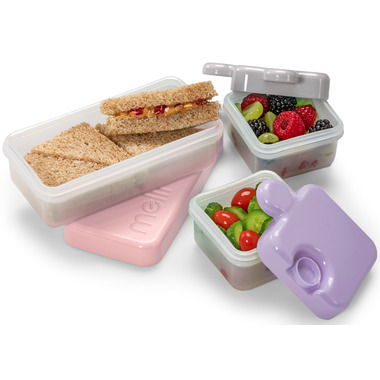 The puzzle container makes feeding fun! Three containers with lids that snap into each other forming a fun and colourful puzzle. It's great for lunchboxes and travel. It's airtight, leakproof, microwave, freezer and dishwasher safe but most of all it's really fun to play with!