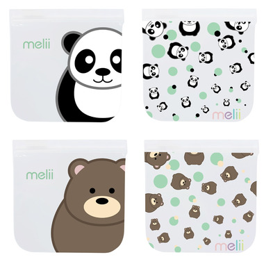 Melii Melii Reusable Snack Bags With Zip Closure Panda and Bear