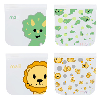 Melii Reusable Snack Bags With Zip Closure Dino and Lion