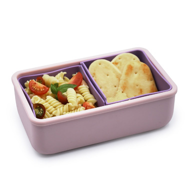 This two compartment silicone bento box is colorful and practical, with a large 23.6oz/700ml section with a two removable 10oz/300ml compartments and is made from 100% food safe silicone that is sturdy and durable. Use the bento box with or without the removable compartments. The easy to open and close lid is especially important for elementary school aged kids who need to access their lunch confidently and independently.