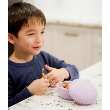 With the cat silicone bowl with lid your little one can carry and store snacks in adorable style! This kid-sized, playful and leakproof food container makes snacking fun!