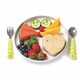 • Stainless steel spoon and fork helps kids self-feed