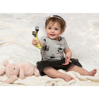 There is nothing messier than a toddler self-feeding, but if your little one will be covered in apple sauce from head-to-toe, they may as well have fun doing it! Melii caterpillar spoon and fork have textured silicone handles which are easy to grip and promotes independent eating.
