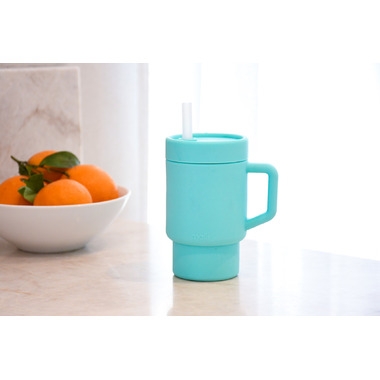 Your little one can now have a matching tumbler! The design is similar to popular tumblers used by many mommies allowing you little one to sip in style! This 100% silicone tumbler with straw and handle is designed with little ones in mind and features an easy grip handle for little hands, empowering toddlers to sip with confidence and without assistance. Both functional and stylish, the soft silicone straw is gentle on sensitive gums, ensuring a comfortable drinking experience for your baby or toddler. Plus, it encourages independent drinking, helping to develop fine motor skills and fostering a sense of accomplishment with every sip.