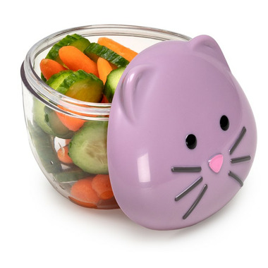 With the cat snack container your little one can carry and store snacks in adorable style! This kid-sized, playful and leakproof food container makes snacking fun!