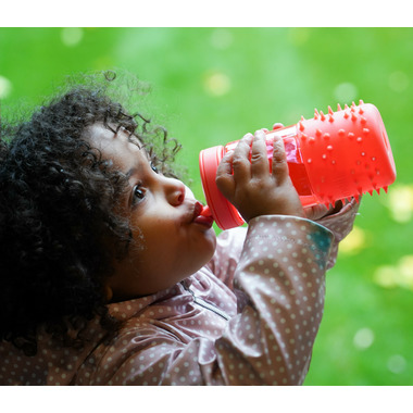 Soft silicone spikes are great for fidget and sensory exploration. It's the perfect size for lunchboxes and little hands. The straw, lid and silicone sleeve are colorful and easy-to-clean.