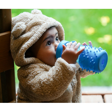 Soft silicone spikes are great for fidget and sensory exploration. It's the perfect size for lunchboxes and little hands. The straw, lid and silicone sleeve are colorful and easy-to-clean.
