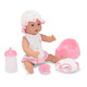 Little mommies will love cuddling with this posable baby doll, perfect for bath-time play. Annie has open-and-close eyes, can “drink” from her bottle, and can sit on her very own potty chair.  She also comes with a pacifier and a pink-trimmed, self-stick diaper. Dressed in a charming, gingham and flowered sundress, underpants, and matching bonnet, Annie will be a lovable addition to anyone’s doll family.