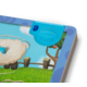 • The sturdy wooden puzzle board has pictures under the pieces for easy matching, and an on/off switch to give a quiet play option.