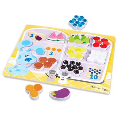 • 10-piece wooden chunky puzzle with food to match and count with Blue?s Clues & You! characters and elements
