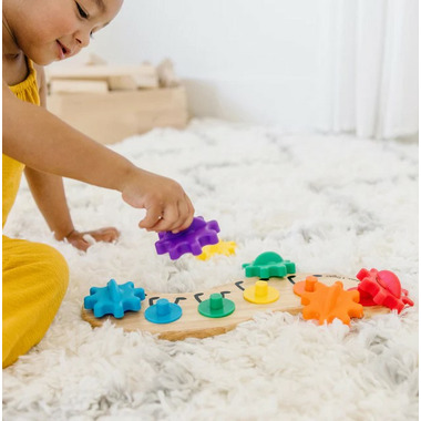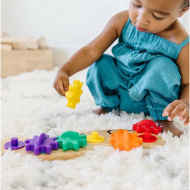 wooden base. This rainbow-colored gear toy is hands-on fun at any speed!