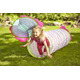 Indoors or out, your child will love crawling through this pink, butterfly-themed tunnel! Cutie Pie's sweet and smiling face covers one end, making it extra fun to hide and seek in this nearly five-foot-long tube. Made of durable wipe-clean materials, it sets up quickly and easily folds flat for convenient storage. Sturdy steel frame is padded for comfort and hours of activity. Suitable for ages 3 years old and up.