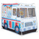 - Barbecue theme on one side, ice cream truck on the other; back door entry and pass-through windows on both sides with roll-up flaps; mesh fabric in front windows and sturdy floor material