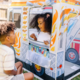- Playful details include gas tank, illustrated food menus, drink display in cooler with flap that opens, sunroof with flap; includes double-sided reusable menu activity card, handy take-along storage tote, easy illustrated assembly instructions