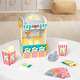 Turn any day into Fair Day! Satisfy hungry imaginations by popping and serving pretend play carnival popcorn! Pretend to empty kernels into the kettle, add jumbo popcorn pieces, and tip into the wooden tabletop popcorn machine. Crank the handle on the side to make the pieces jiggle and jump! Scoop popcorn into 2 classic popcorn containers, press the butter pump, and pretend to season. Includes play money to let kids three and older be the vendor or the customer at an at-home fair. Designed to amuse, surprise, and challenge kids three and older to keep them laughing and learning through play, the Popcorn Play Set is an engaging, hands-on way to introduce counting and cause-and-effect and to encourage fine motor skills.