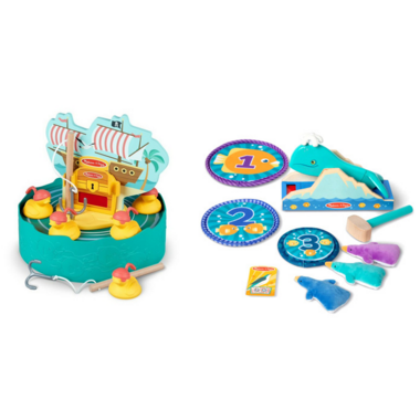 - Melissa & Doug Fun At The Fair Hook A Duck Pirate Adventure: Hook a duck playset is fun for 1 or 2 players. The duck spins as the base rotates. Catch the duck with the fishing poles. This item includes 2 fishing pole and cards which store neatly inside.