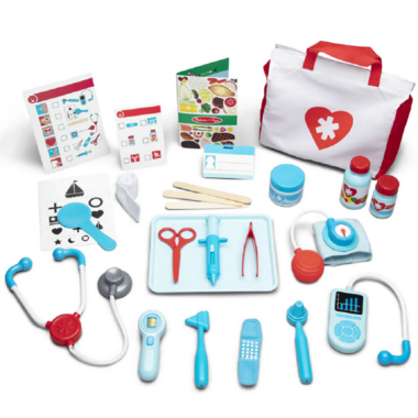 The doctor will see you now! The 25-piece Melissa & Doug Get Well Doctor’s Kit Play Set offers realistic accessories let little doctors help patients get well! Kids 3 and older can pretend to check temperature, heartbeat, blood pressure, eyesight, hearing, and more. The play set is a fun and engaging way to ease any feelings of stress associated with a visit to the doctor and to encourage nurturing and empathetic play. Spark a child’s creativity and imagination, and inspire young healers for years to come!