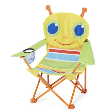Bold stripes and Giddy Buggy's big blue eyes provide an inviting seat when your busy child needs to take a break. This delightful folding chair with sturdy metal frame also has a handy cup holder positioned at your child's fingertips! Durable and water resistant fabric and a convenient storage bag make it perfect for trips to the beach, the park, the campground, or anywhere your child's imagination may lead!