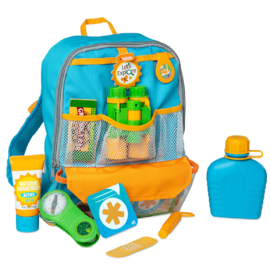 - 23-piece pretend play hiking set with backpack, hiking essentials