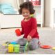 Set the perfect table for your play-food feasts and pretend parties! This sturdy play set comes with four plastic plates; four plastic cups, four plastic forks, spoons, and knives; a squeezable soap bottle; a mesh-covered sponge; and a metal drying rack with utensil-holding insert. Add them to a play kitchen or use as a stand-alone play set--either way, this appealing play set mimics the real-life objects and activities kids see around them, helping build social skills, encourage communication, and even get practice doing big-kid chores. BPA-free and dishwasher safe, the colorful pieces (in red, green, blue, and yellow) are perfect for real snack time, too!