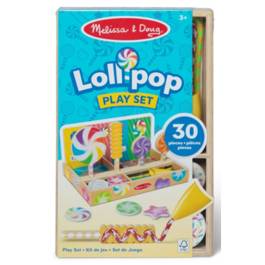 - The Melissa & Doug Lollipop Playset features large and small wooden lollipops
