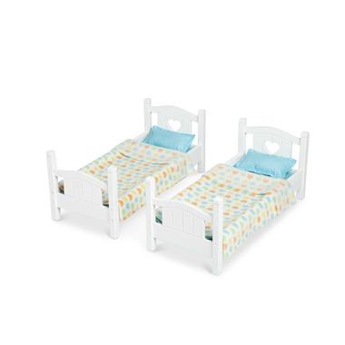 Tuck in favorite dolls and stuffed animals for bedtime or sleepovers with this realistic and classically styled wooden bunk bed that suits any décor! These two durable white beds with a wipe-clean surface can be used side by side or stacked to stand approximately 17 inches tall. Clear instructions make the beds easy to assemble with just a screwdriver (not included). Mine to Love® dolls and accessories encourage empathy and help kids express themselves as they explore grown-up roles and responsibilities. A child’s confidence and self-esteem blossom and grow with each nurturing moment of imaginative play!