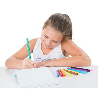 Inspiration comes easily with these twelve vivid markers that won't roll away! Easy to grasp design with a handy phthalate-free storage pouch. Non-toxic and washable, the unique shape will help develop the preferred grip for later writing skills.