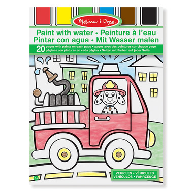 lissa & Doug Paint With Water Vehicles has a special paint palette that is embedded right in the pages of this all-inclusive paint-with-water art activity. With a cup of water and the included paintbrush, beginning painters can get instant rewards - with no messy paint spills! Twenty cool scenes of vehicles and things that go are fun for kids to color and easy to display.