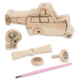 - All-inclusive craft kit includes 3 wooden vehicles to build, 3 wooden play figures to decorate, 8 pots of colorful paint, 3 paintbrushes, 3 sheets of foil stickers to add details