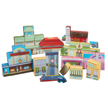 Take PAW Patrol™ play to new heights with this deluxe set of 37 easy-to-assemble jumbo cardboard blocks! Follow the illustrated instructions to assemble durable, extra-thick cardboard blocks with a wipe-clean surface in different sizes. Combine the illustrated sides of color-matching blocks to build PAW Patrol™ scenes: the Lookout Tower, Farmer Yumi’s farm, City Hall, Mr. Porter’s Café, Katie’s Pet Parlor, the train station, and town buildings. Or, stack blocks to build towers, roads, buildings, and more! Four fold-out cardboard vehicles spark imaginative play for kids two and older. PAW Patrol™ is always ready to help, inspiring preschoolers with a blend of teamwork, adventure, and humor as they develop social, emotional, and developmental skills through play.
