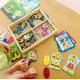 - All pieces store in wooden take-along tray with slide-in lid and handle for easy cleanup and portability